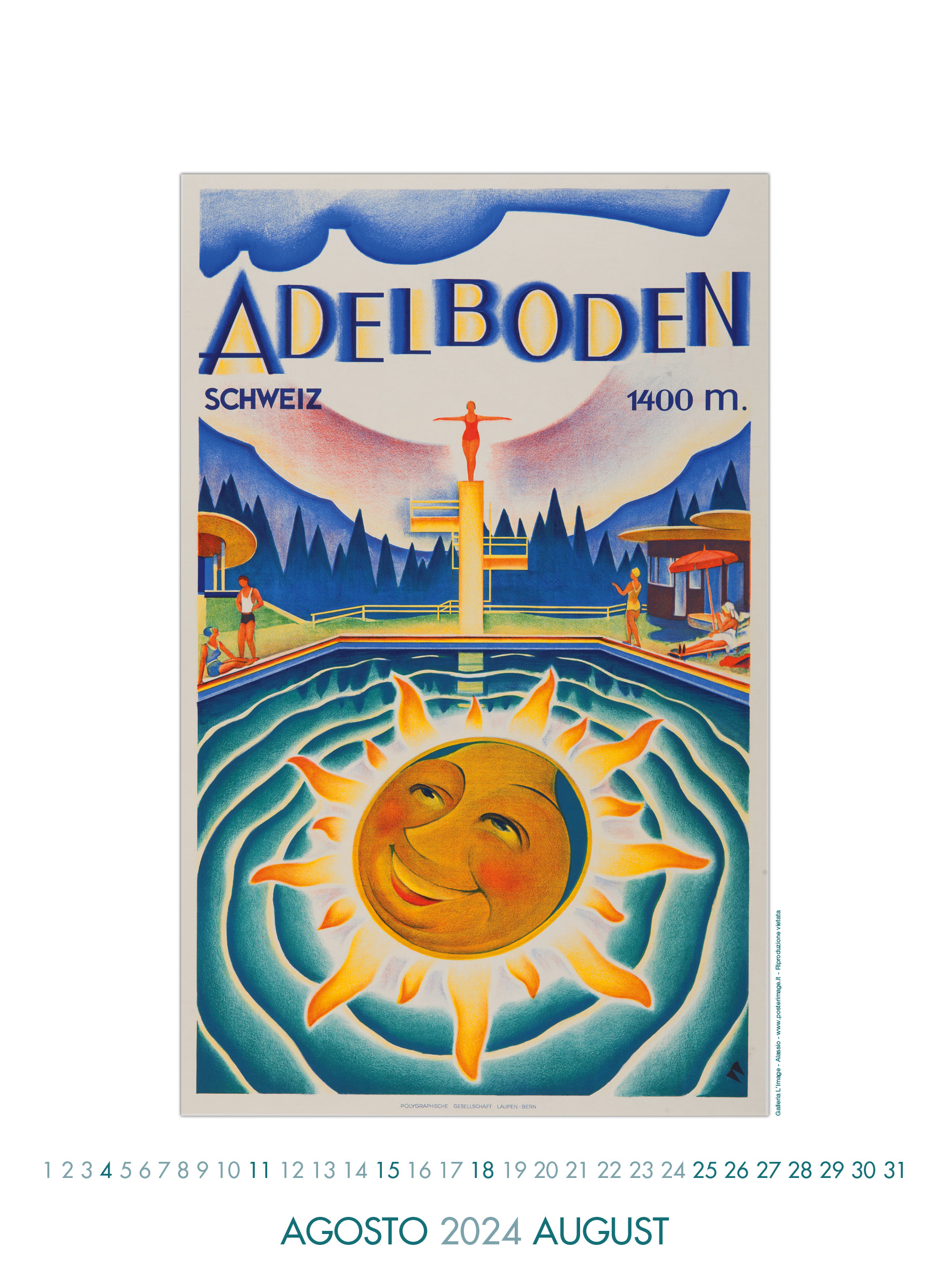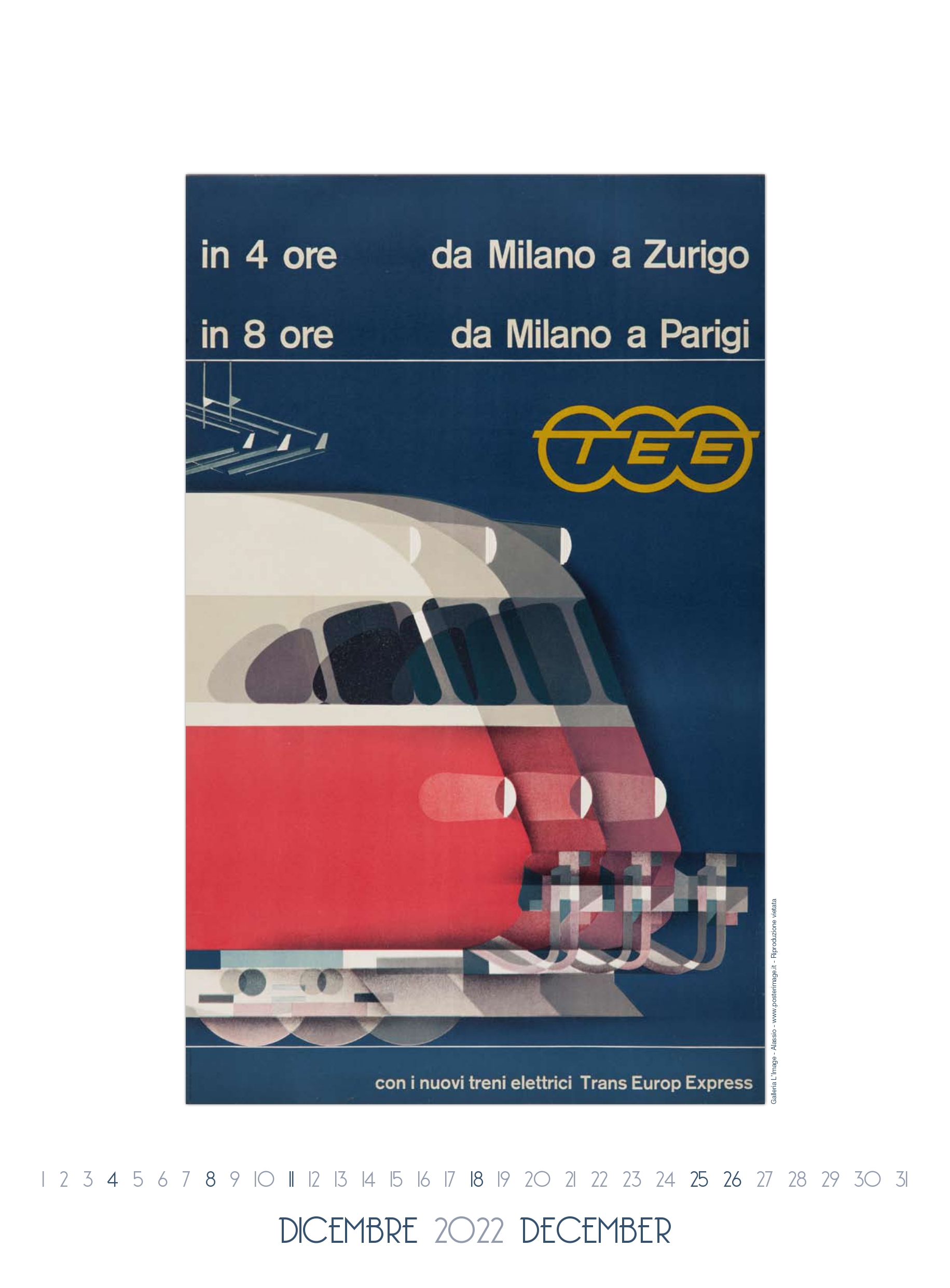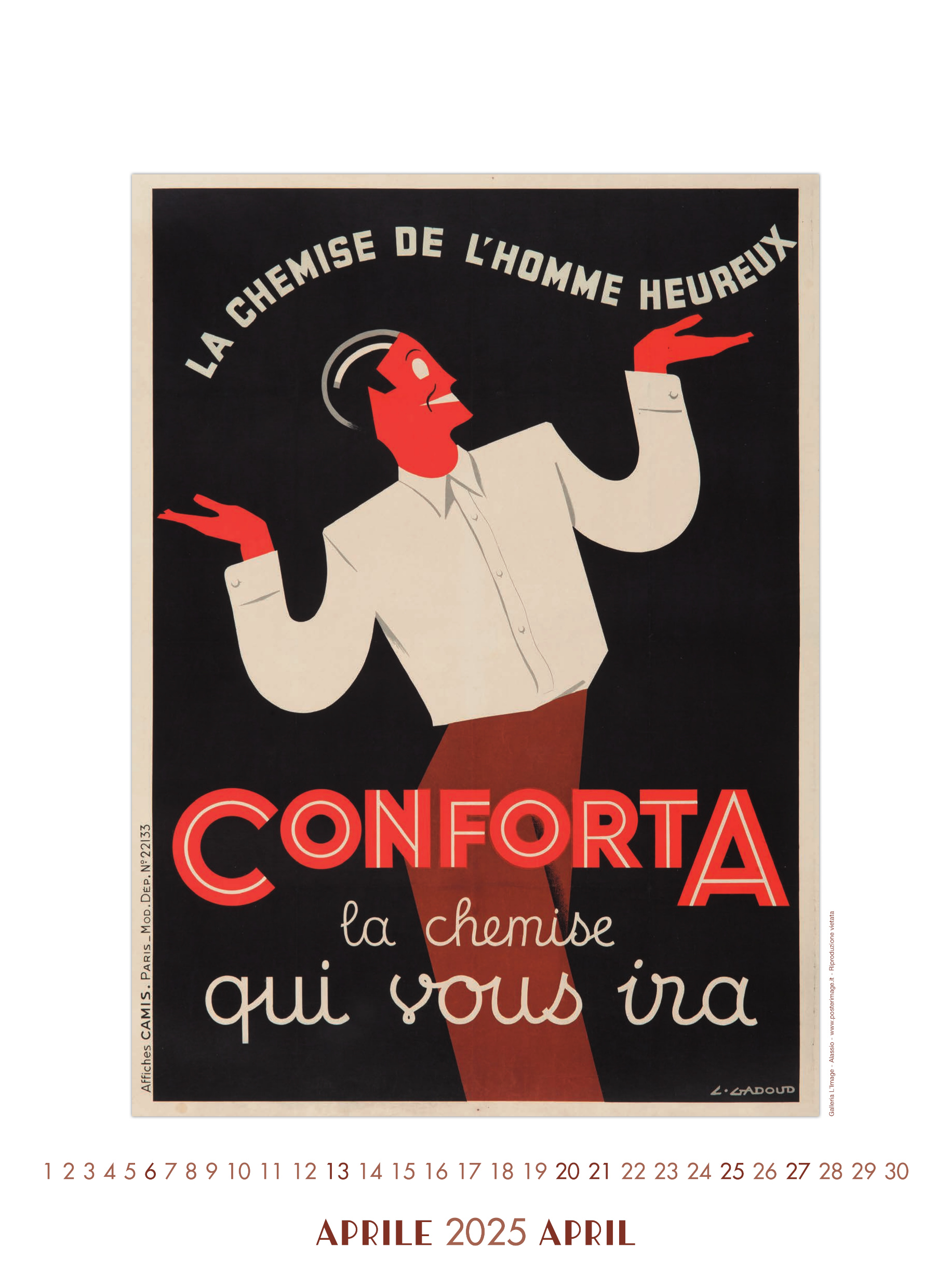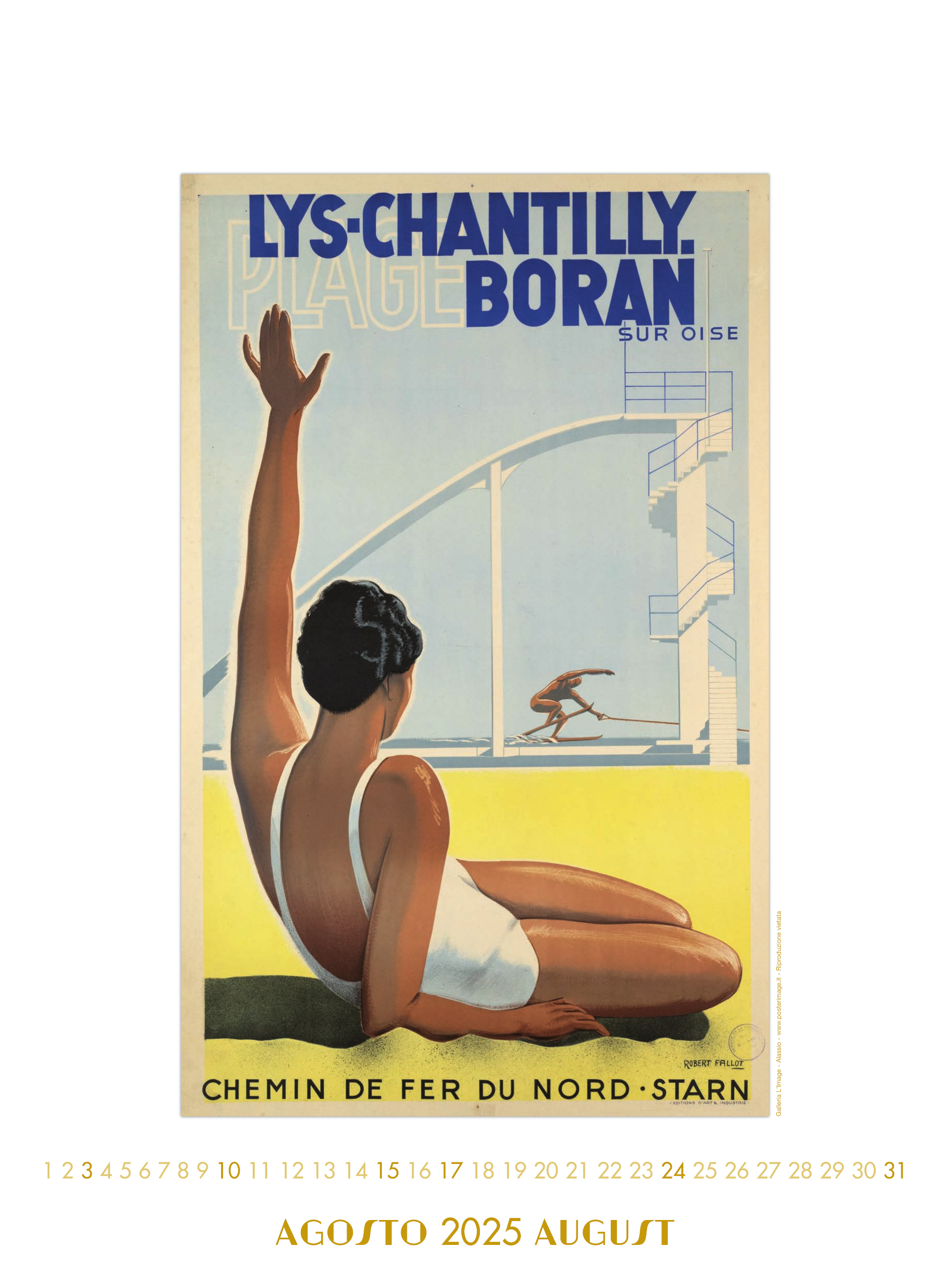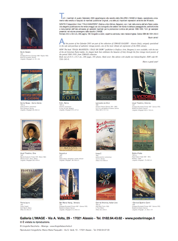 Calendario L’IMAGE 2025 dedicato al Centenario dell’ART DECO Paris 1925 in 13 splendidi manifesti d’epoca. Un must imperdibile, da regalare, da collezionare, da personalizzare per le aziende. Formato 31 x 42 cm, 14 pagine, carta patinata 250 gr. Prezzo di 27 Euro + 12 Euro per la spedizione in Italia con il corriere (nella stessa tariffa, fino a 2 calendari), pagamento con bonifico bancario, dati su richiesta via e-mail a: info@posterimage.it