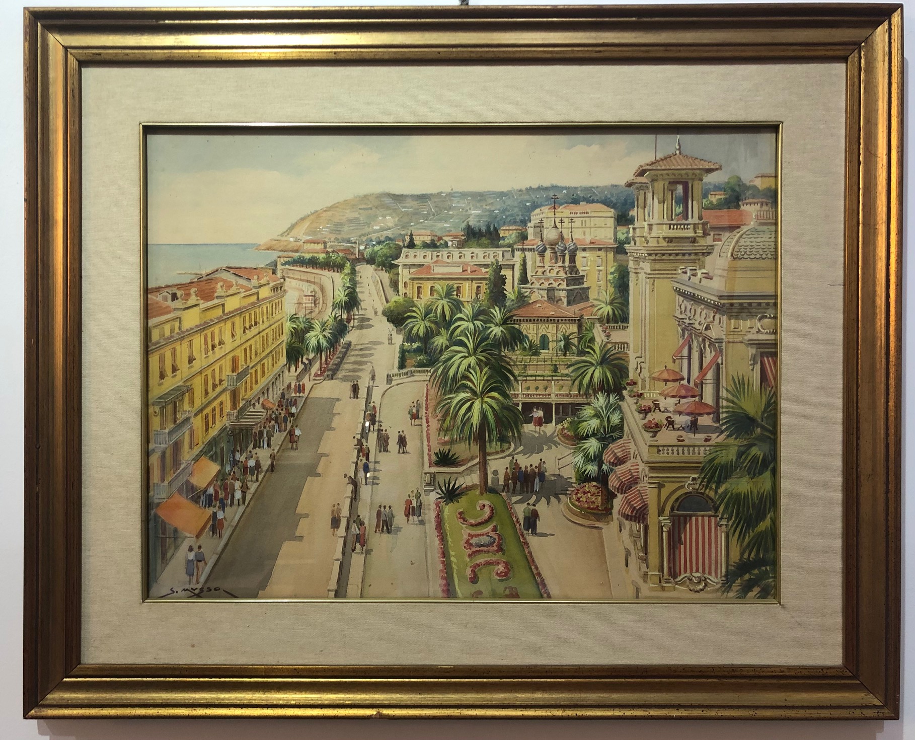 Sanremo, Albergo Nazionale – Acquarello originale d’epoca
